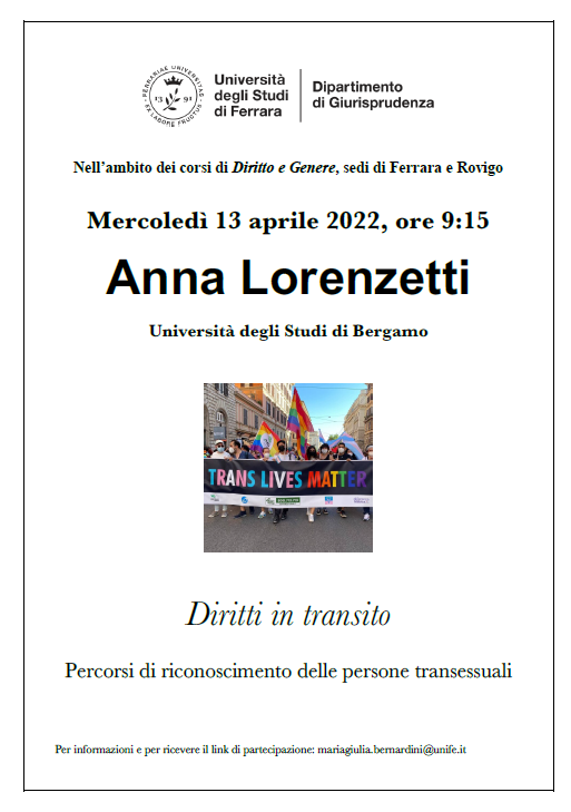 Nell’ambito dei corsi di Diritto e Genere, sedi di Ferrara e Rovigo