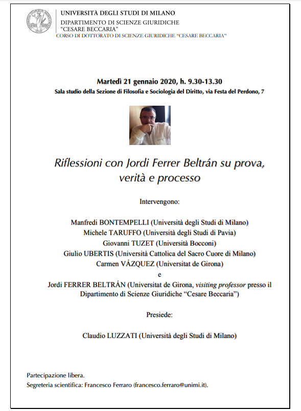 Manfredi Bontempelli (Università degli Studi di Milano), Michele Taruffo (Università degli Studi di Pavia), Giovanni Tuzet (Università Bocconi), Giulio Ubertis (Università Cattolica del Sacro Cuore di Milano), Carmen Vázquez (Università de Girona), Jordi Ferrer Beltrán (Università di Girona)