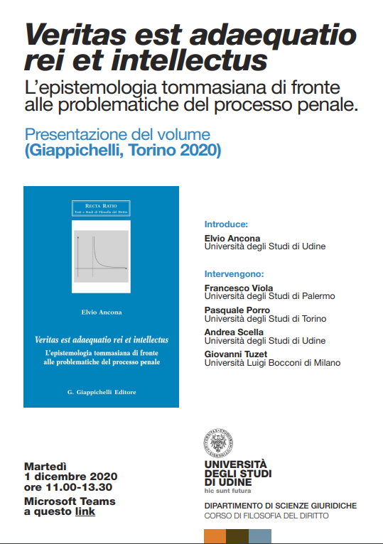Veritas est adaequatio rei et intellectus. L’epistemologia tommasiana di fronte alle problematiche del processo penale”, presentazione del volume (Giappichelli, Torino 2020)