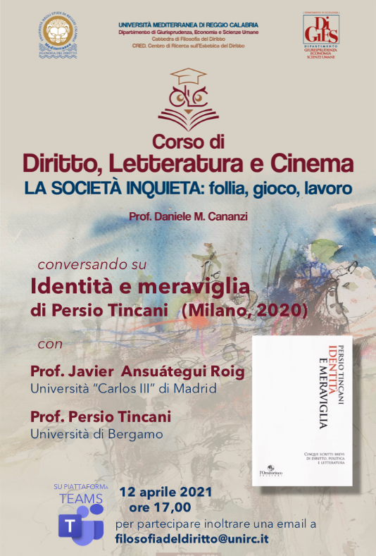 12 aprile 2021, ore 17.00 – Il seminario, organizzato da Daniele Cananzi nell’ambito del Corso di “Diritto, Letteratura e Cinema”, si terrà su Teams. Per partecipare, inviare una mail a: filosofiadeldiritto@unirc.it