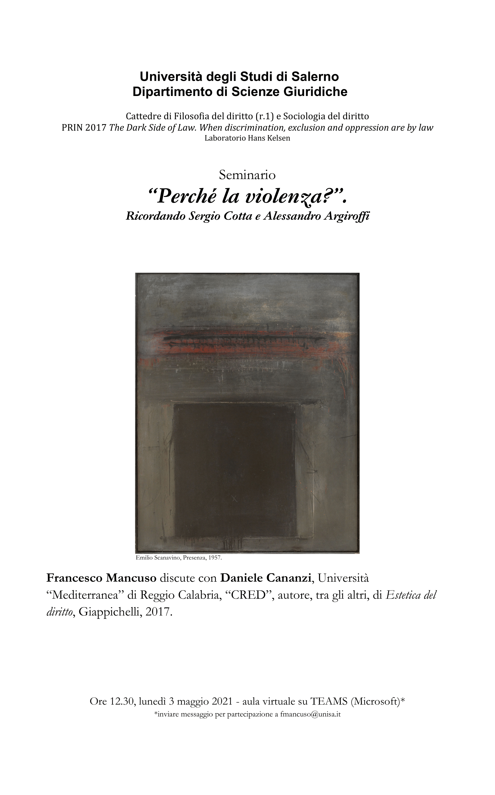 Francesco Mancuso discute con Daniele Cananzi (Università Mediterranea di Reggio Calabria), autore, tra gli altri, di Estetica del diritto, Giappichelli, 2017