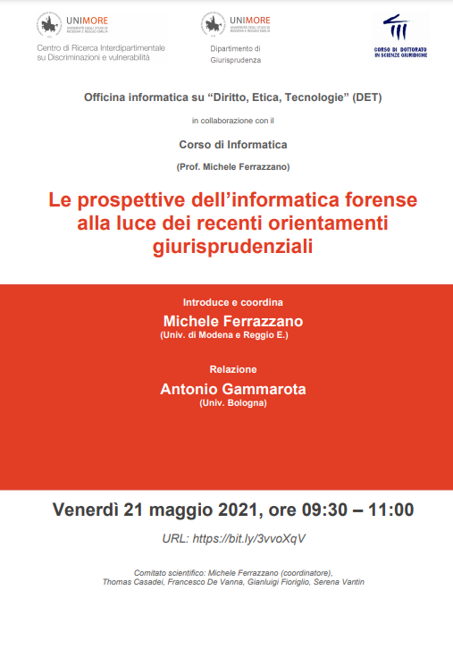 Ciclo di seminari organizzati dall’Officina informatica su “Diritto, Etica, Tecnologie” (DET) del CRID (Centro di Ricerca Interdipartimentale su Discriminazioni e vulnerabilità)