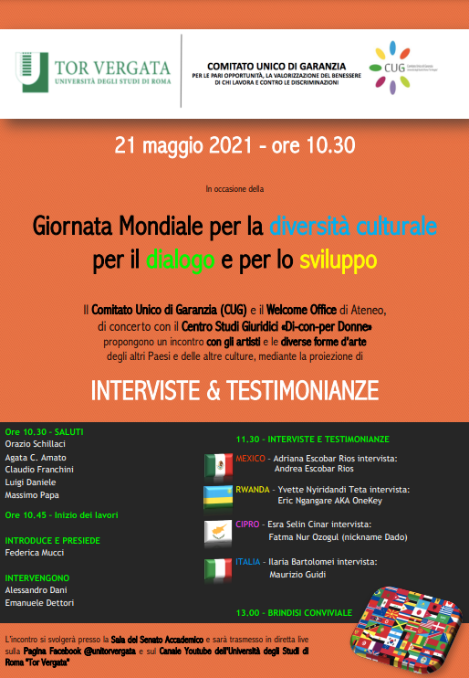 Università degli Studi di Roma Tor Vergata, CUG, Centro Studi Giuridici “Di-con-per-Donne” Giornata Mondiale per la diversità culturale per il dialogo e per lo sviluppo