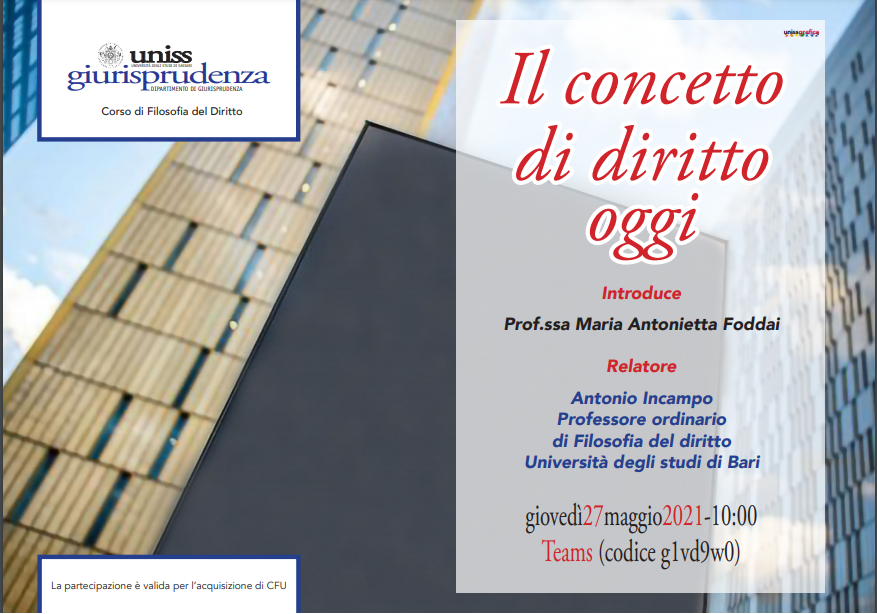 Introduce Maria Antonietta Foddai (Università di Sassari); relazione di Antonio Incampo (Università degli Studi di Bari)
