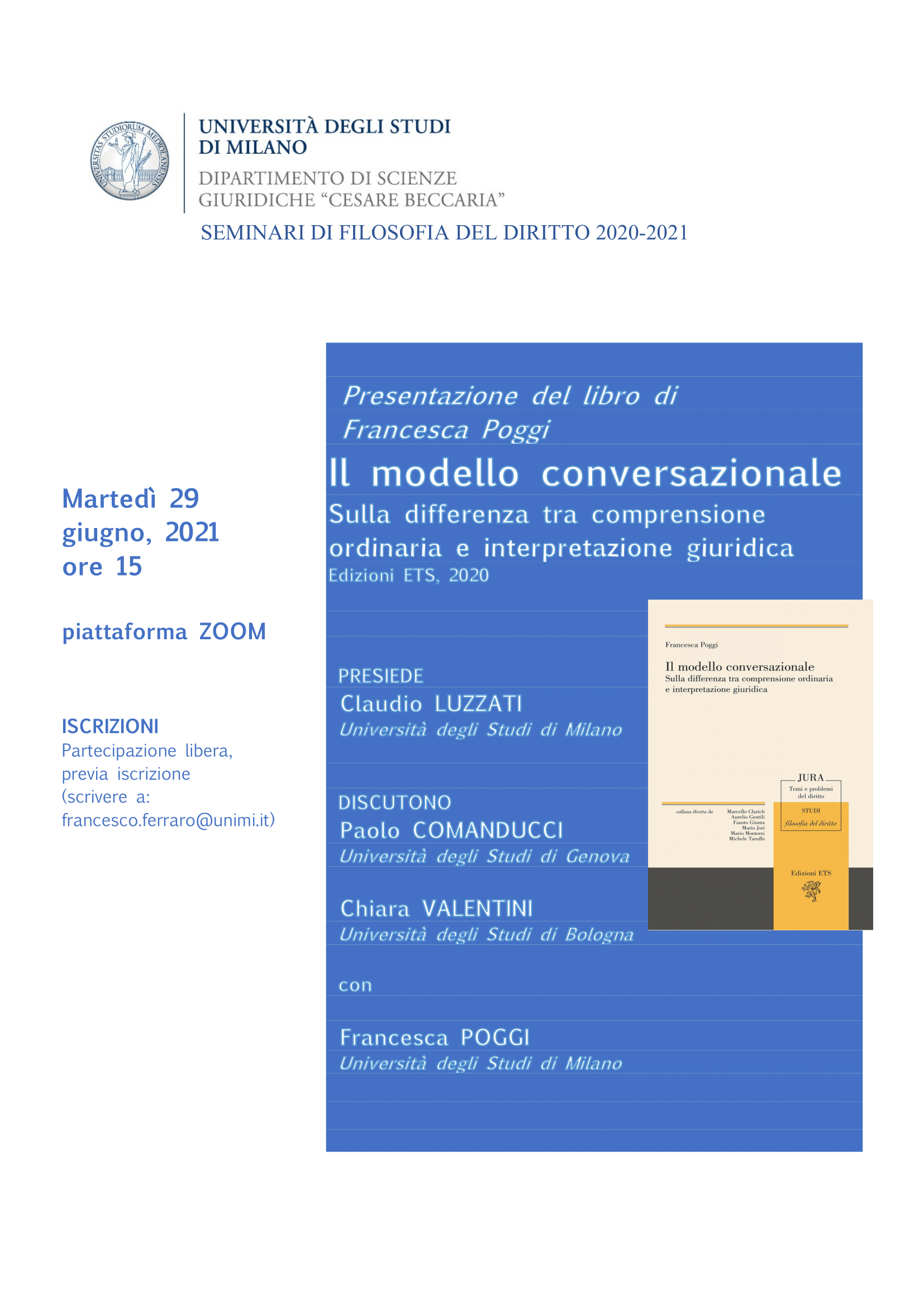 Presentazione del libro di Francesca Poggi, Il modello conversazionale. Sulla differenza tra comprensione ordinaria e interpretazione giuridica (Edizioni ETS, 2020)
