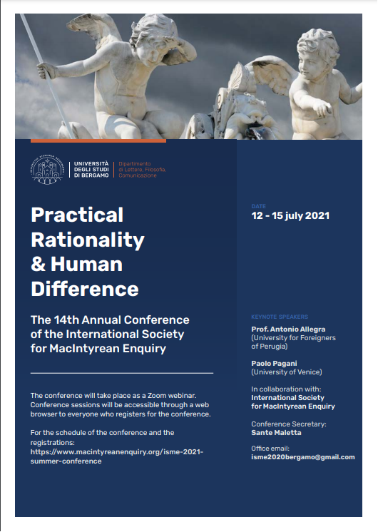 Il programma può essere consultato alla seguente pagina web: https://www.macintyreanenquiry.org/isme-2021-summer-conference-schedule