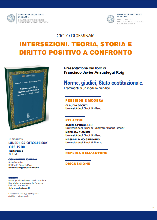 L’incontro rientra nel Ciclo di seminari Intersezioni. Teoria, storia e diritto positivo a confronto