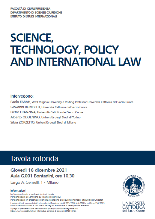 2 pensieri su “SCIENCE, TECHNOLOGY, POLICY AND INTERNATIONAL LAW