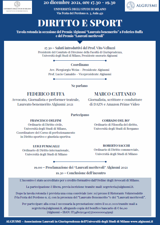 Tavola rotonda in occasione del Premio Algiusmi “Laureato benemerito” a Federico Buffa e del Premio “Laureati meritevoli”