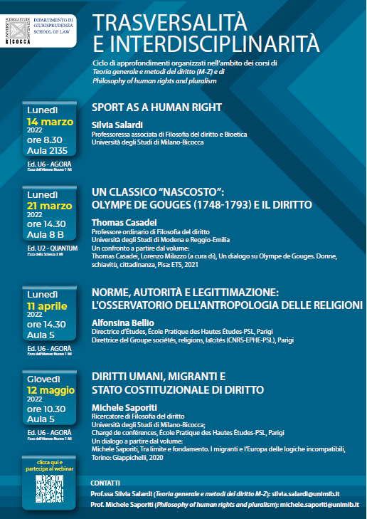 Ciclo di approfondimenti organizzati nell’ambito dei corsi di Teoria generale e metodi del diritto (M-Z) e di Philosophy of human rights and pluralism