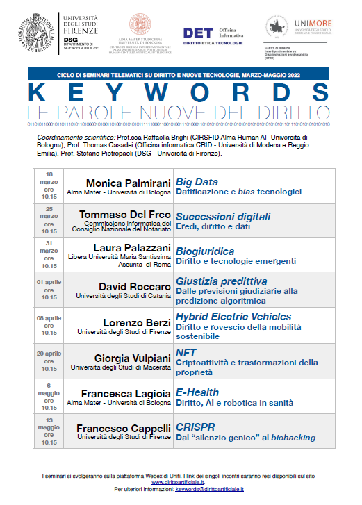 Per ulteriori informazioni: keywords@dirittoartificiale.it