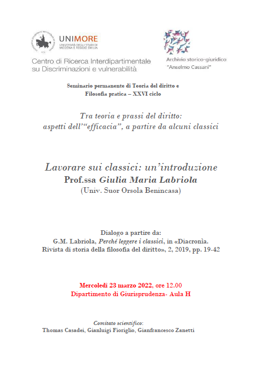Seminario permanente di Teoria del diritto e Filosofia pratica – XXVI ciclo