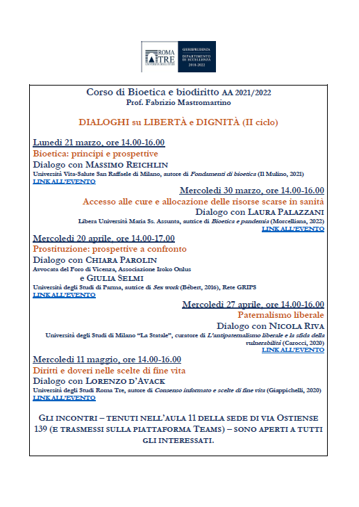 Corso di Bioetica e biodiritto AA 2021/2022
