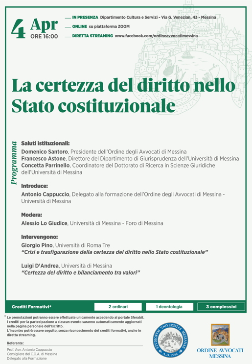 Evento in presenza, Via G. Veniezian, 43 – Messina ed online su piattaforma Zoom e diretta streaming via Facebook