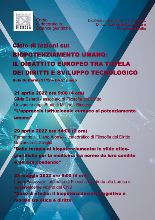 Ciclo di lezioni su: Biopotenziamento umano: il dibattito europeo tra tutela dei diritti e sviluppo tecnologico