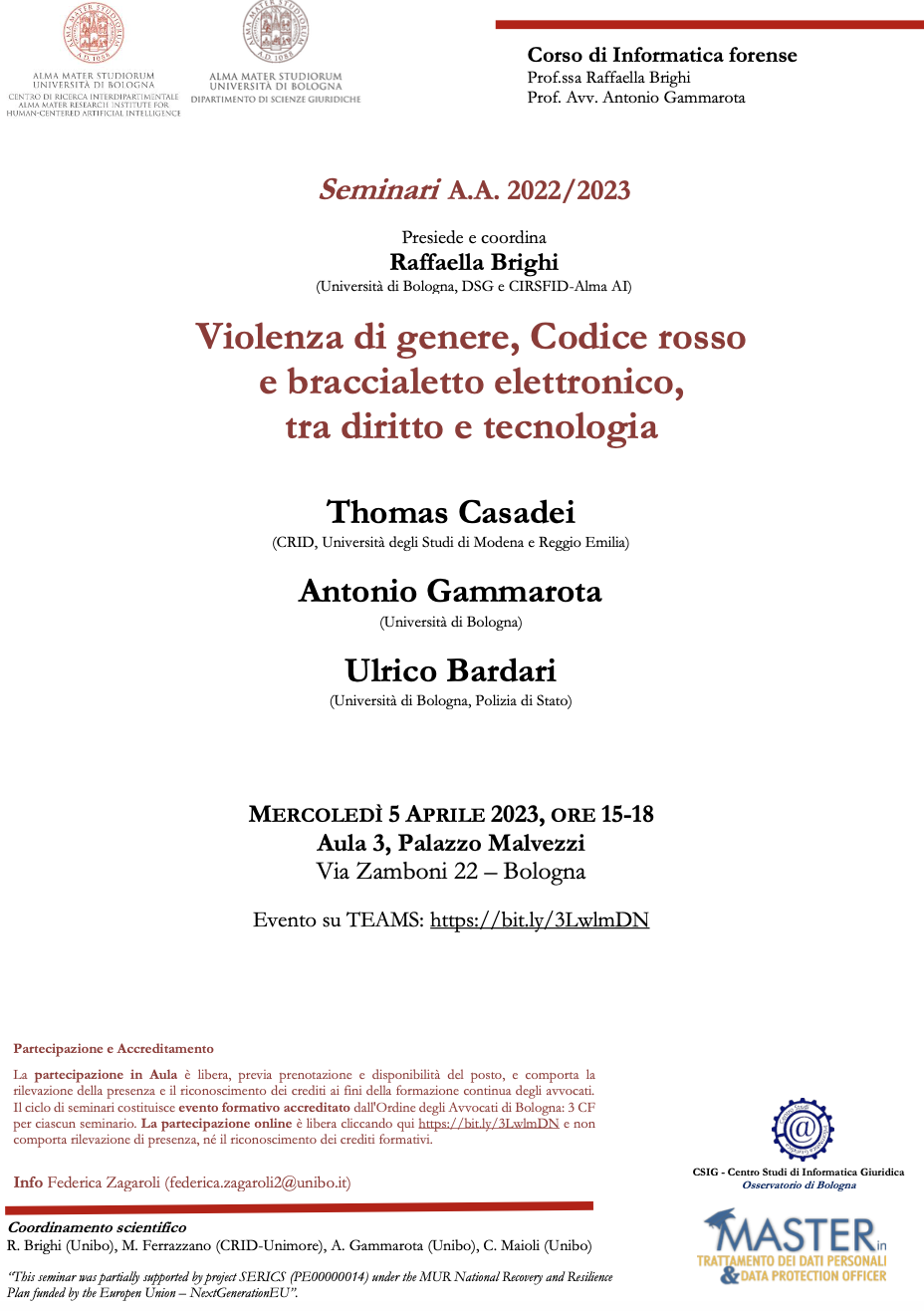 5 aprile 2023 – Violenza di genere, Codice rosso e braccialetto elettronico, tra diritto e tecnologia