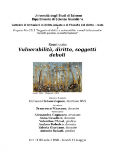 Progetto Prin 2015 “Soggetto di diritto e vulnerabilità: