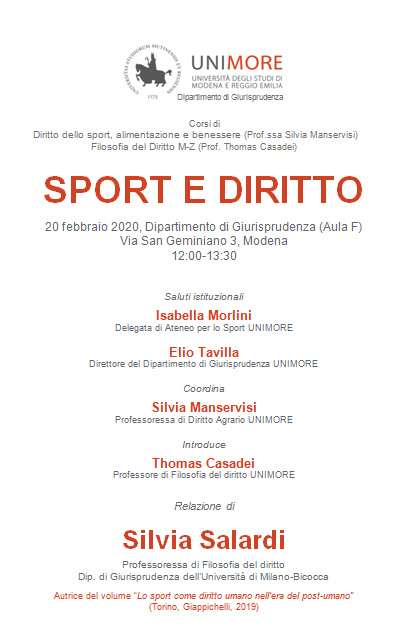 Interviene: Silvia Salardi (Università di Milano-Bicocca) ed Autrice del volume Lo sport come diritto umano nell’era del post-umano (Giappichelli 2019)