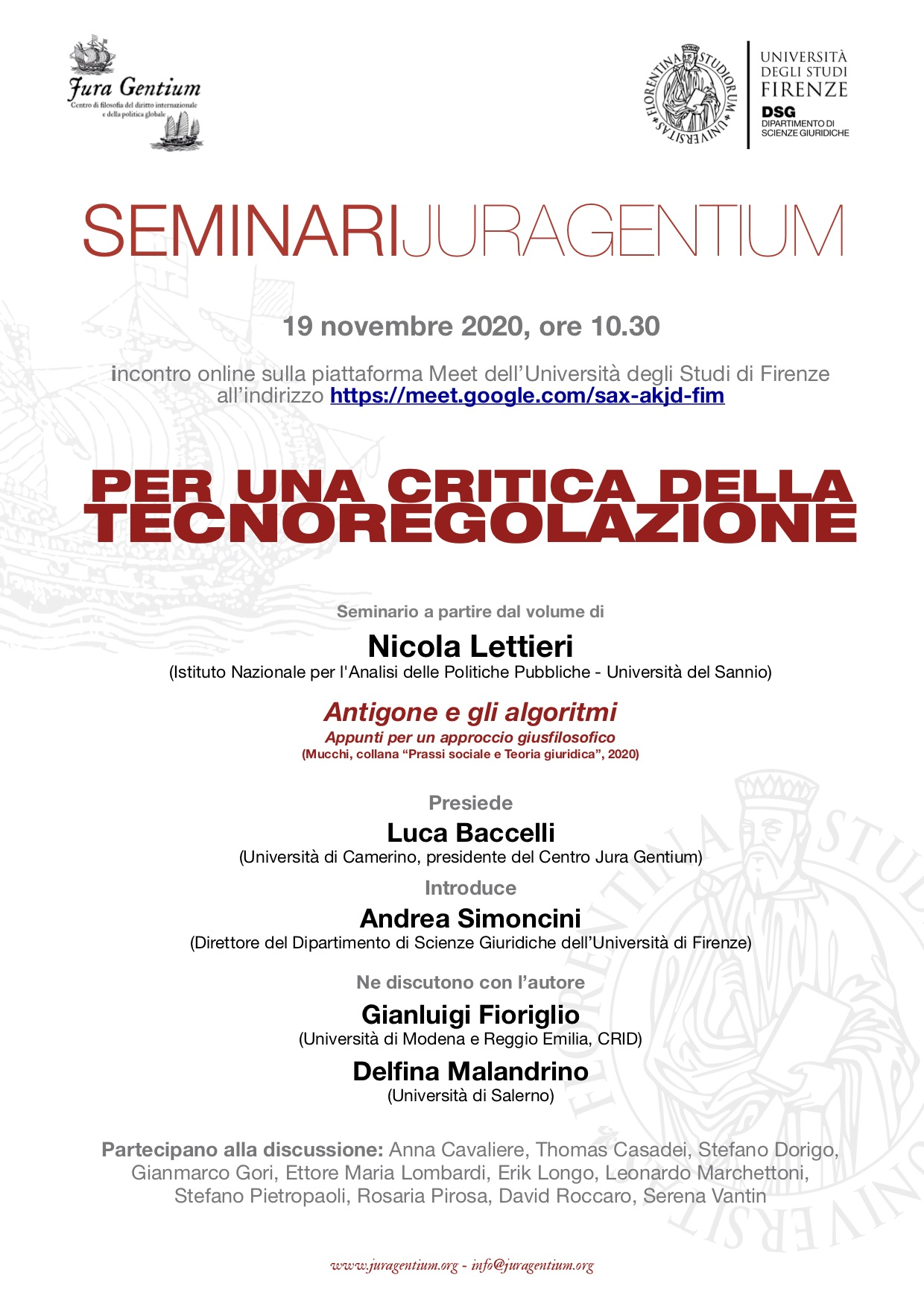 a partire dal volume di Nicola Lettieri, Antigone e gli algoritmi. Un approccio giusfilosofico, Mucchi, 2020.