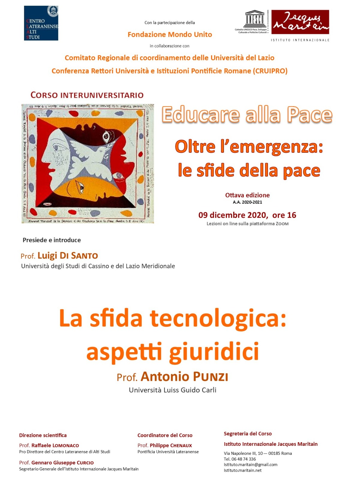 Presiede e introduce Luigi Di Santo (Università degli Studi di Cassino e del Lazio Meridionale) Relazione di Antonio Punzi (Università Luiss Guido Carli), La sfida tecnologica: aspetti giuridici