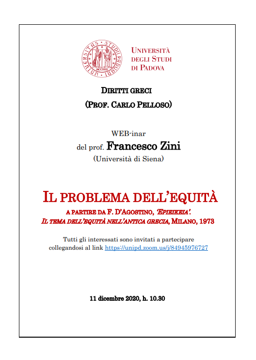 Francesco Zini (Università di Siena), Il problema dell’Equità. A partire da F. D’Agostino, ‘Epieikeia’. Il tema dell’equità nell’antica Grecia, Milano, 1973