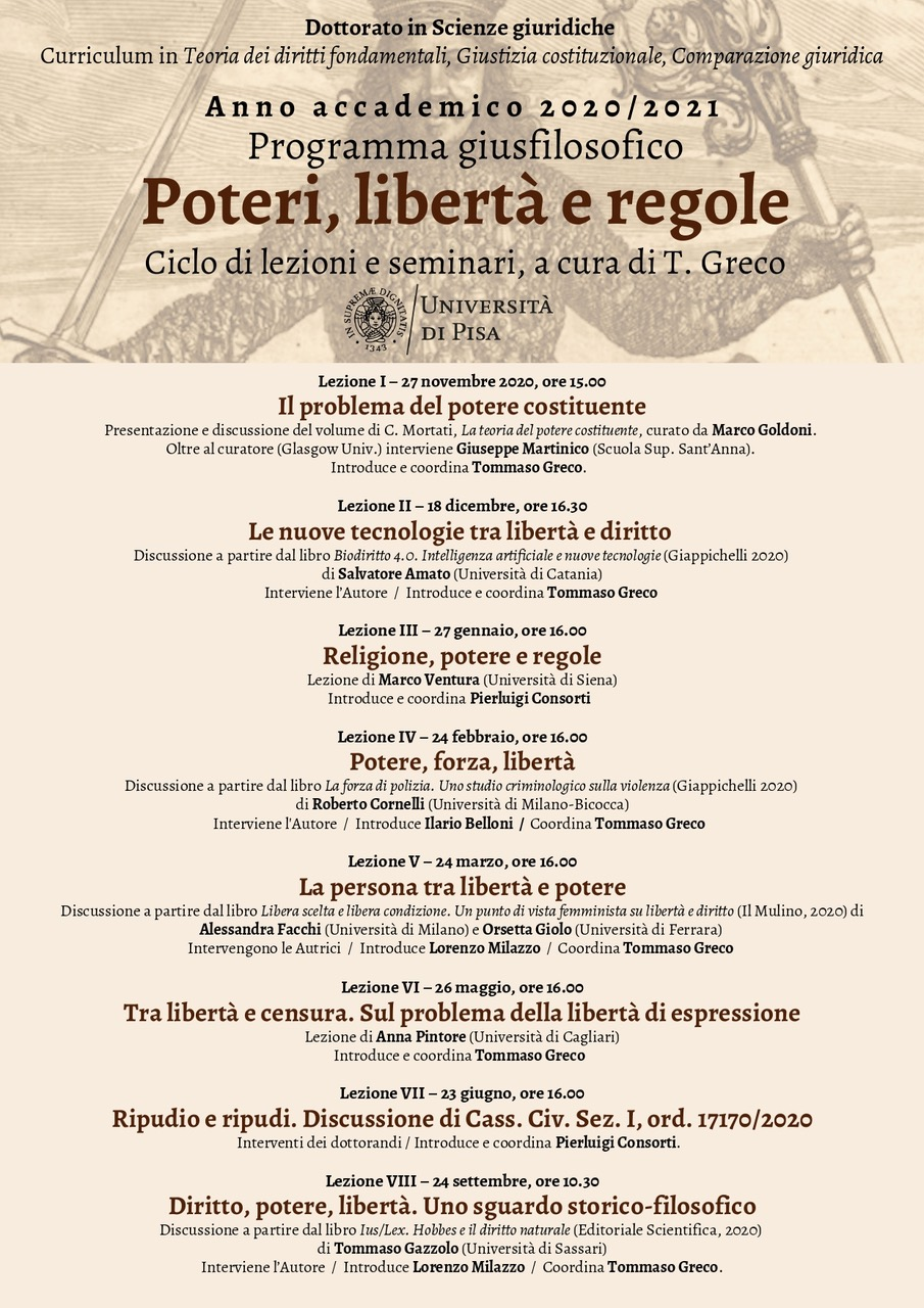 Programma giusfilosofico “Poteri, libertà e regole”, Ciclo di lezioni e seminari a cura di Tommaso Greco