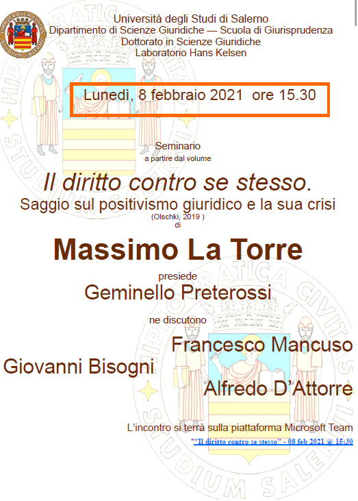 “Il diritto contro se stesso” in occasione della pubblicazione dell’omonimo volume di Massimo La Torre (Olschki, 2019).