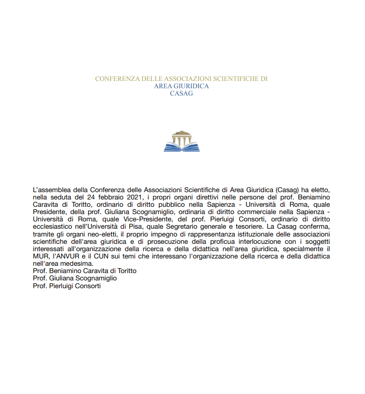 CONFERENZA DELLE ASSOCIAZIONI SCIENTIFICHE DI AREA GIURIDICA CASAG