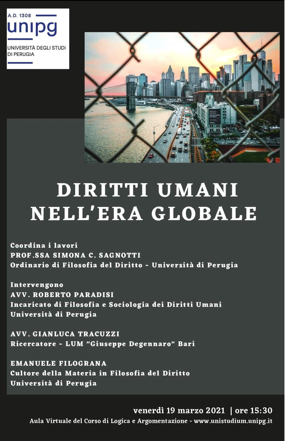 L’evento si terrà nell’Aula virtuale del Corso di Logica e Argomentazione: www.unistudium.unipg.it