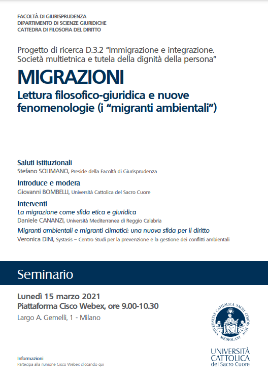 MIGRAZIONI. Lettura filosofico-giuridica e nuove fenomenologie (i “migranti ambientali”)