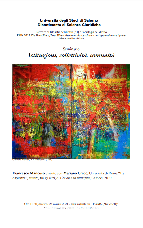 Francesco Mancuso discute con Mariano Croce, Università di Roma “La Sapienza”, Autore, tra gli altri, di Che cos’è un’istituzione, Carocci, 2021.